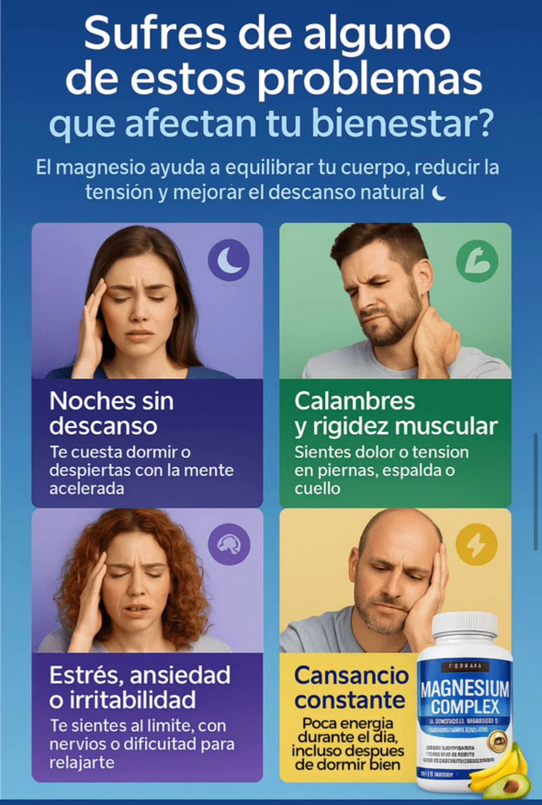 El magnesio interviene en más de 300 funciones corporales. Al suplementarlo, tu cuerpo recupera vitalidad, combate la fatiga y mejora el enfoque. Vuelve a sentirte activo y productivo 🔋